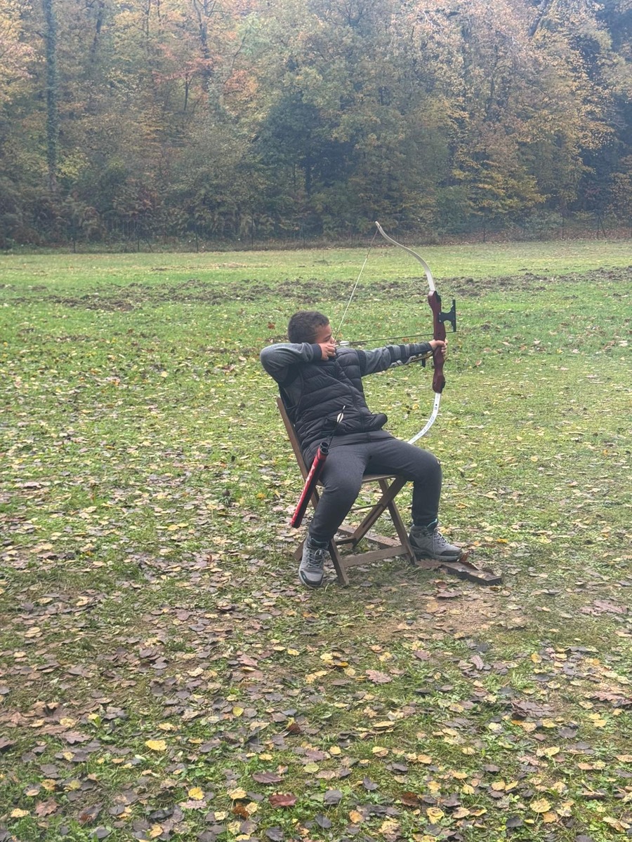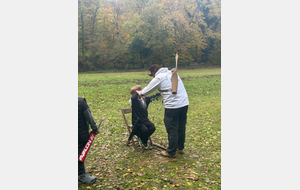 Petite originalitĂ© en fin de sĂ©ance : le Capitaine a dĂ©fiĂ© tout le monde de tirer la derniĂšre volĂ©e⊠assis ou Ă genoux ! đč